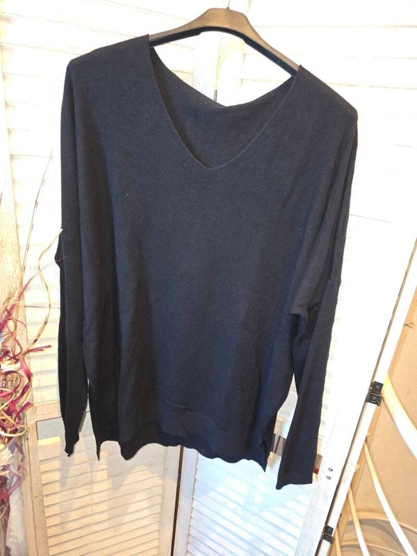 Kuscheliger Feinstrickpullover V Neck Ausschnitt auf der Seite kleinen Schlitz