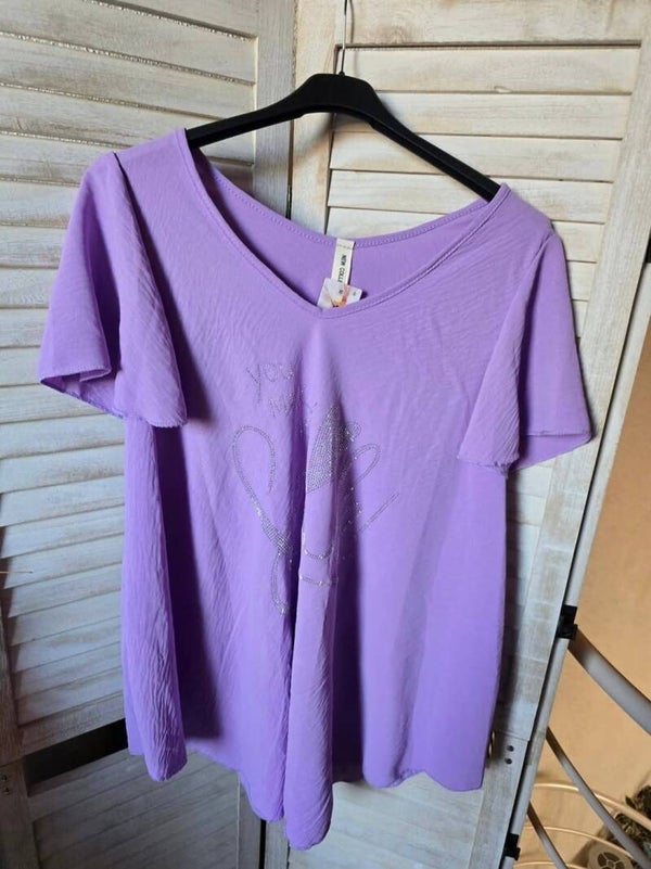 Kurzarm T-Shirt " You Make me Smile " mit Strasssteine fallen sehr schön.